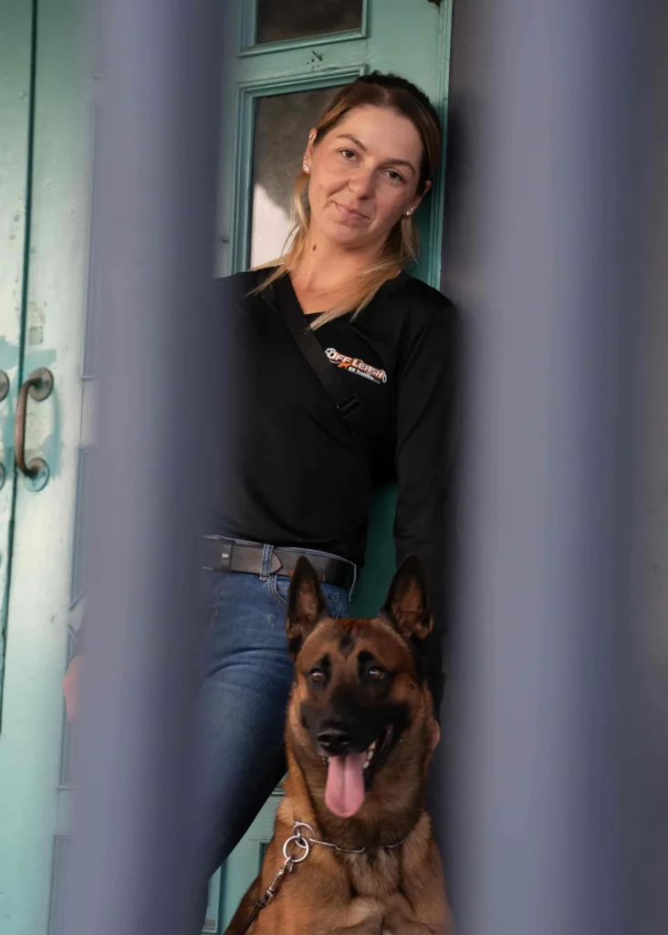 She currently trains and competes with two Belgian Malinois in PSA (Protection Sports Association), giving her firsthand experience with high-drive, precision-based training.